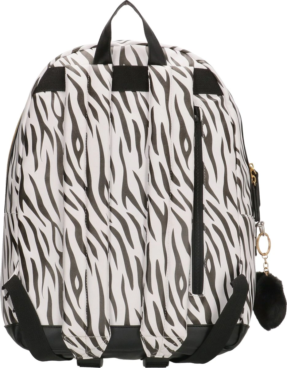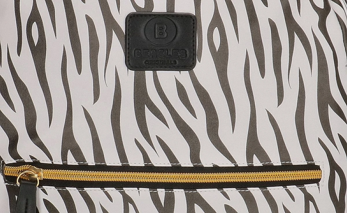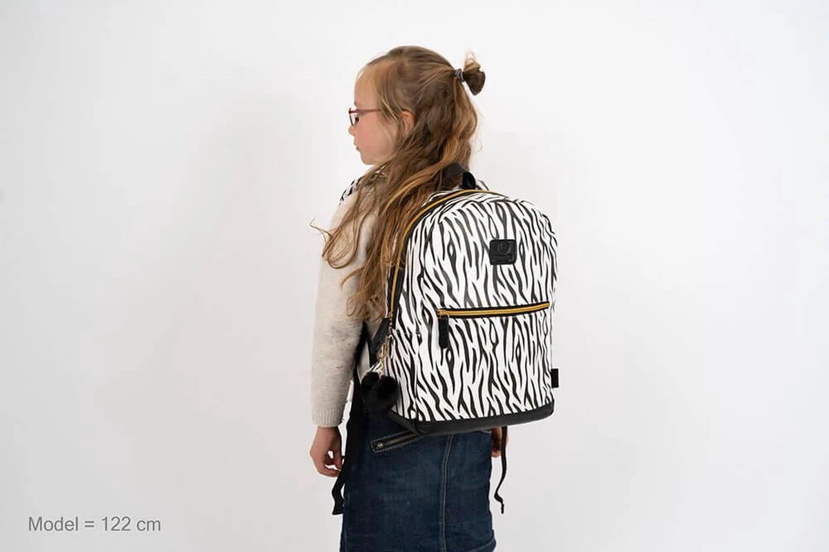 Zebraprint lovers opgelet! Hoe tof is deze rugzak van Beagles Originals met de zebraprint en het zwarte hartje aan de rits van de tas! De tas heeft een hoofdvak en voorvak, beide met ritssluiting. Het hoofdvak van de tas is lekker ruim, al de spullen van jouw kleintje passen er in. De tas wordt gedragen aan de twee schouderbanden óf aan het enkele handvat op de bovenzijde van de tas. Is deze leukerd binnenkort van jouw kleintje?