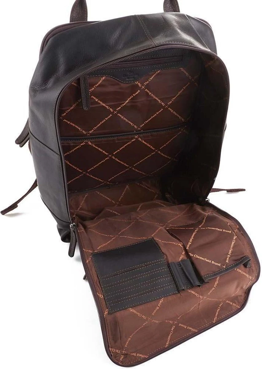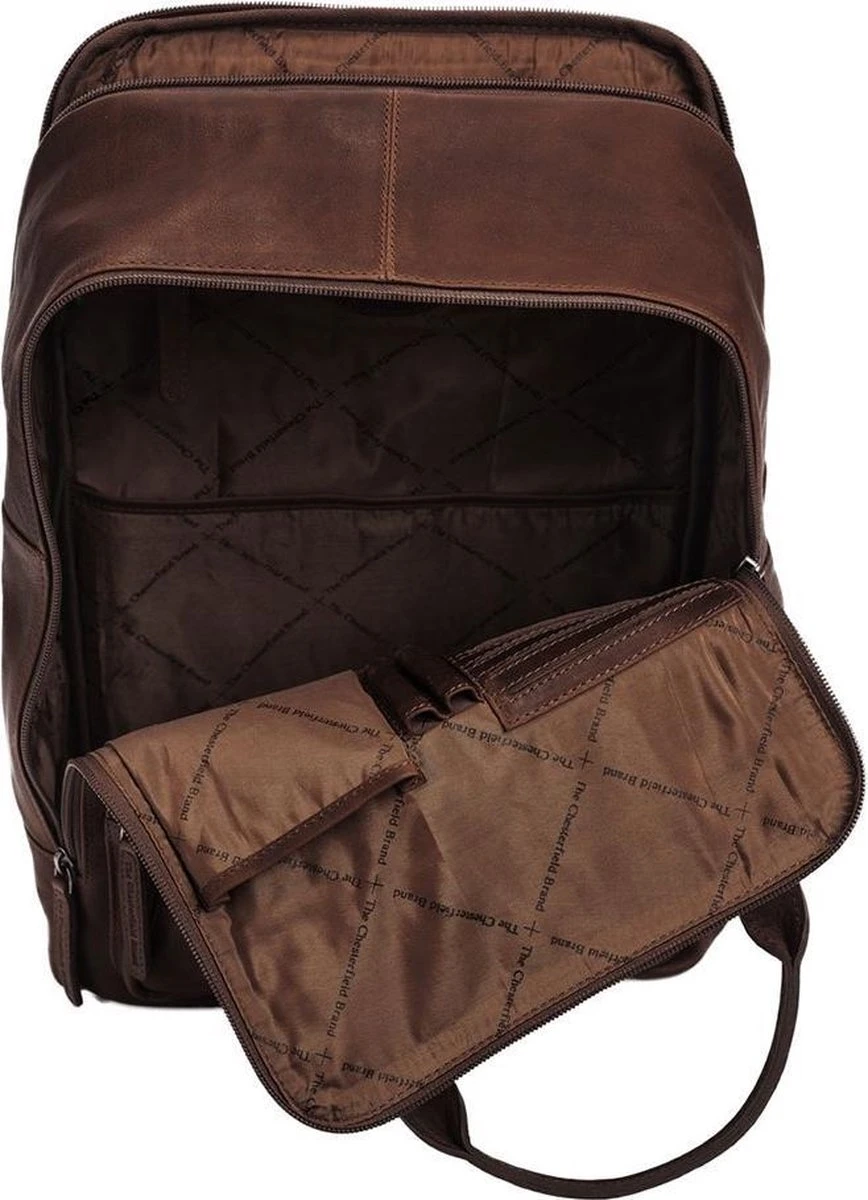 Rugzak uit de Belford serie van Chesterfield. De Belford serie van Chesterfield is gemaakt van hoogwaardig Wax Pull-up leer. Wax pull-up leer wordt gekenmerkt door een zachte en soepelere structuur. Het hoofdcompartiment is ruim ingedeeld met gevoerd 15.4 laptop (36×27 cm) en gevoerd tablet vak. Ook geschikt voor A4 materiaal met intern rits-en meerdere steekvakken. Ruim georganiseerd voorvak met ritssluiting.