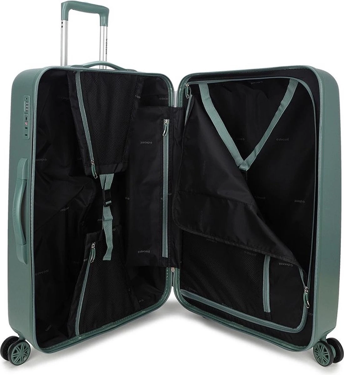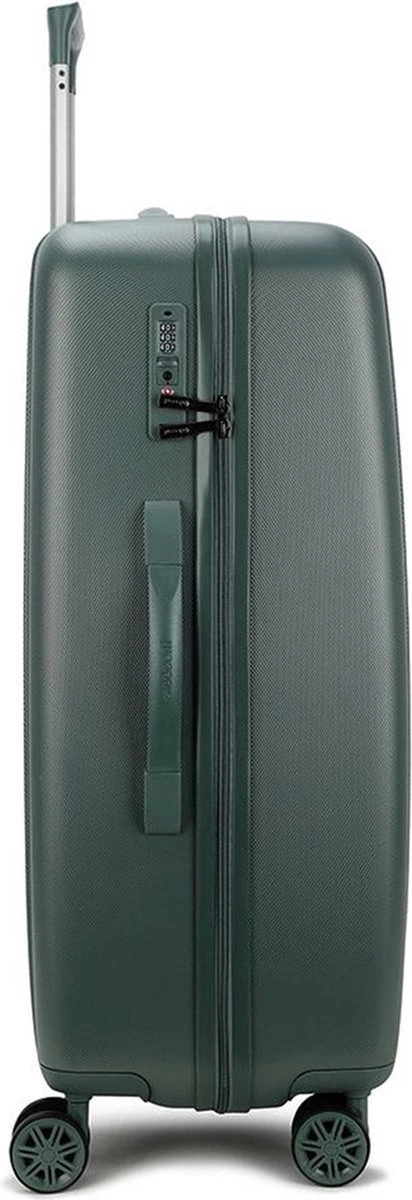 Ontspannen op reis met deze Decent harde koffer uit de Tranporto collectie. Deze serie is gemaakt van ABS, een zeer sterk en licht materiaal, wat weer enorm scheelt met sjouwen. Je kunt er veel bagage in kwijt en met de soepele zwenkwielen scheur jij in no-time naar de incheckbalie. Een groot voordeel van een harde koffer is dat deze goed bestand zijn tegen stoten en krassen. In de vrolijke kleur groen en met zijn opvallende ribbelstructuur herken je jouw koffer ook nog eens direct als deze op de bagageband voorbij komt. Lekker handig in het gebruik en tegen een uitstekende prijs-kwaliteit verhouding!