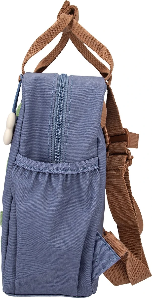 De kleine blauwe rugzak uit de serie Dino World mini heeft een schattige dino van badstof op de voorkant, die een grappige hanger van een bot uit zijn bek heeft hangen. Handig: de aparte draagriem, de verstelbare schouderbanden, de zijvakjes en de extra brede lip aan de rits. Materiaal: 100 procent polyester.