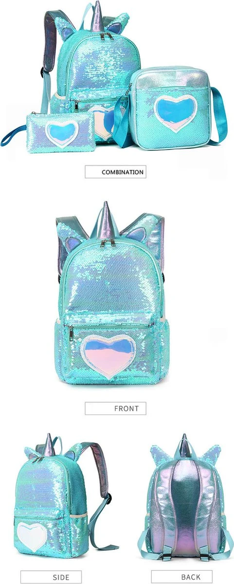 Iedere jongen of meisje wordt blij van deze luxe set bestaande uit een turquoise Unicorn rugtas met bijbehorende tas en etui! Berg al je spulletjes op in deze Unicorn rugzak.