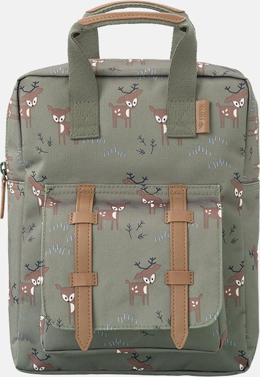 De verschillenden printjes van de kinderrugzakken van Fresk zijn super grappig voor je peuter. Met deze rugzak is je kind goed voorbereid voor de eerste schooldag. Een kleine rugzak met genoeg ruimte om kinderspullen te bewaren. Tevens heeft deze rugzak in de kleur groen een steekvak aan de voorkant met een magneetsluiting; waar je makkelijk bij kan. Het leukste is dat de rugzakken van Fresk gemaakt zijn van gerecyclede PET flessen, zodat jij en je kindje ook bijdragen aan het tegengaan van milieuvervuiling.