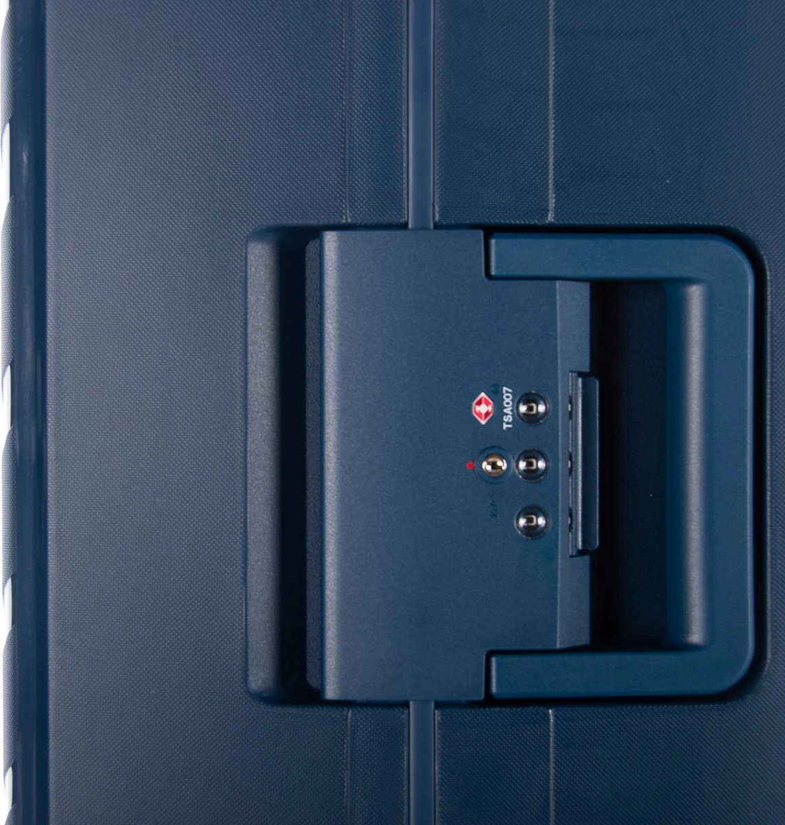 De koffer is voor zien van een driepuntsluiting. Dit betekent dat naast het vaste hoofdslot voorzien van TSA combinatieslot in het midden van de koffer, er nog twee zijsloten aan beide kanten zitten. Hierdoor klik je de koffer op drie punten veilig op slot. De koffer is hierdoor eigenlijk niet open te krijgen zonder de toegangscode of onverhoopt tijdens je reis.
