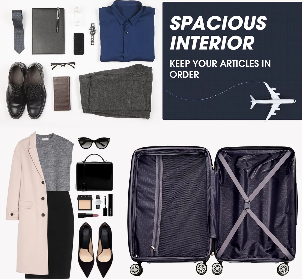 Merax 3-delig Kofferset Met TSA Slot – Trolleyset ABS 40L, 70L & 110 Liter – Grijs