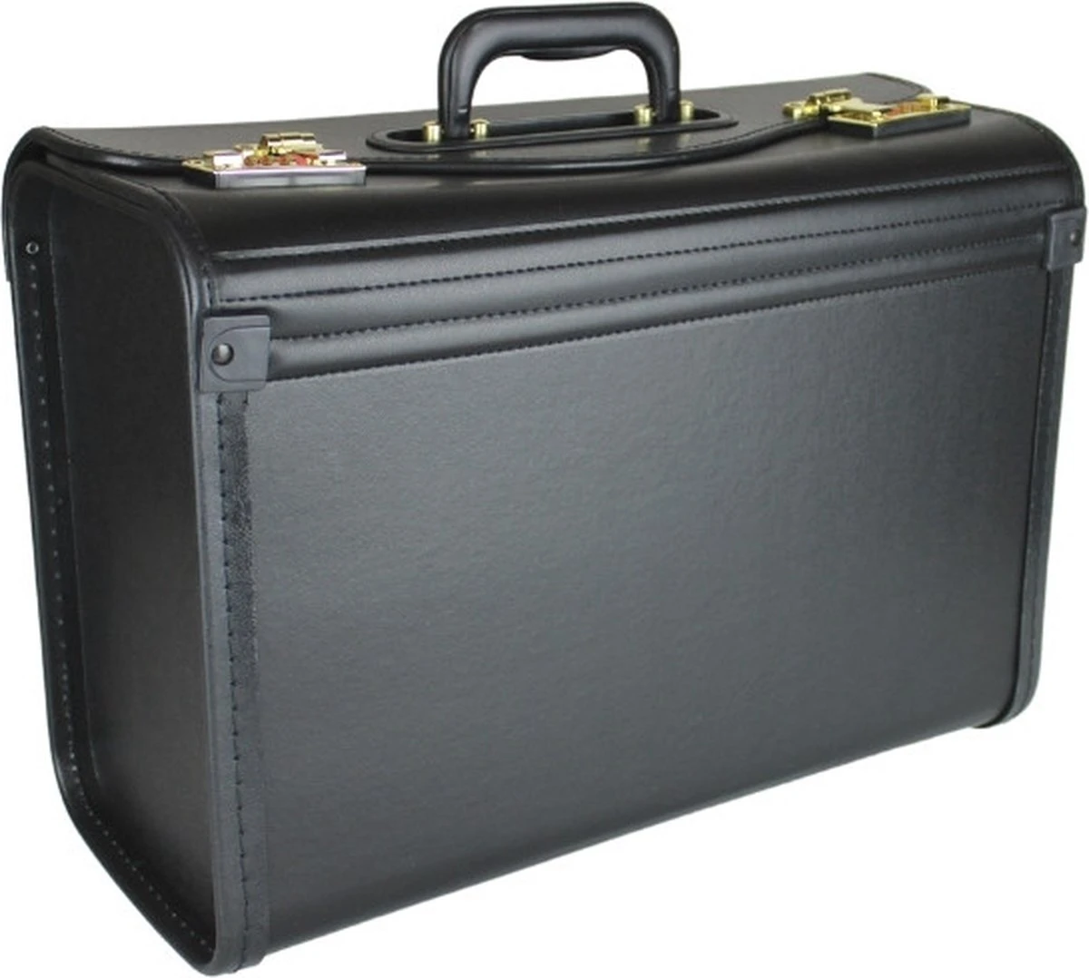 Pilotenkoffer van imitatieleer met ruimte voor een grote map en laptop, stevig handvat en 2 cijfersloten in de kleur goud. Interieur: groot hoofdvak met ruimte voor eventueel 2 laptops, of meerdere mappen, 4 penhouders in het deksel met 2 extra vakken. De pilotenkoffer kan enkel in de hand gedragen worden, dit is een model zonder wielen. Voordeel hiervan is dat de koffer erg lichtgewicht is. Makkelijk te vervoeren in de auto en erg veilig door de dubbele cijferslot. Cijferslot kan eenvoudig gewijzigd worden, hier zit een beschrijving bij toegevoegd.