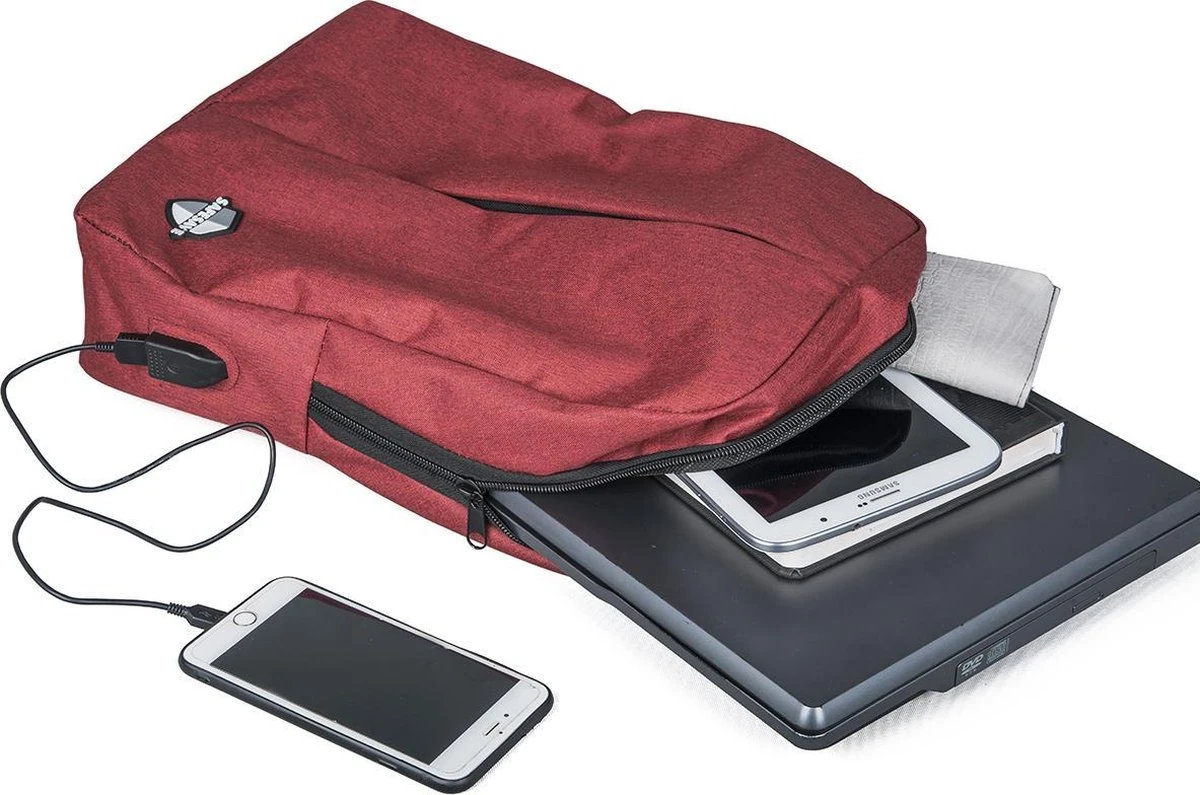SafeSave Rugtas – Waterafstotende Schooltas Met Laptop Vak En Usb Aansluiting – Schoudertas – 15.6 Inch – Rood